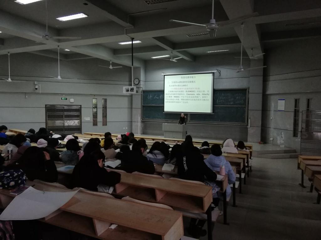 2018年12月25日下午2点,润寰南106教室,何昭青教授为金年会18级787教技班作了一个精彩讲座。 何教授从介绍农业时代到AI时代不同时期段教育技术应用,深入分析互联网+课堂教师模式,以及教育部关于教育信息化建设工作若干文件精神,延伸到今后的工作中,让我们明晰教育技术在教育信息化的地位和作用,明晰教育信息化、教师信息化教学能力的发展及重要性。告诫未来的乡村小学教师,应该立志为乡村教育信息化做出重大贡献。 讲座过程中,何教授亲切幽默的口吻激发了同学们的积极性和求知欲,相信本次讲座对同学们来说是一次极大的帮助,化解同学们心中的疑惑与不解。