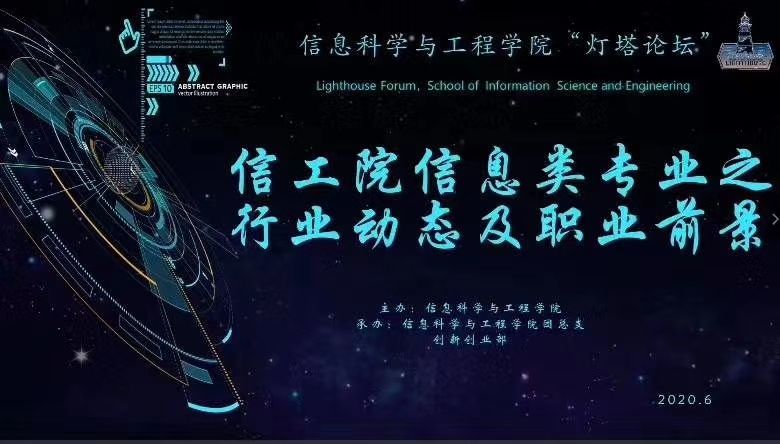 6月14日下午7点至9点30,金年会第二期灯塔论坛于腾讯会议APP举行。本次活动主题为“信息类专业行业动态及职业前景”,邀请了金年会信息类专业优秀校友与在校师生进行实践反馈和经验分享,致力于提高学生的专业意识,帮助学生明确未来职业发展的趋势与挑战,以促进专业良性发展,树立学生专业学习和职业前景信心。