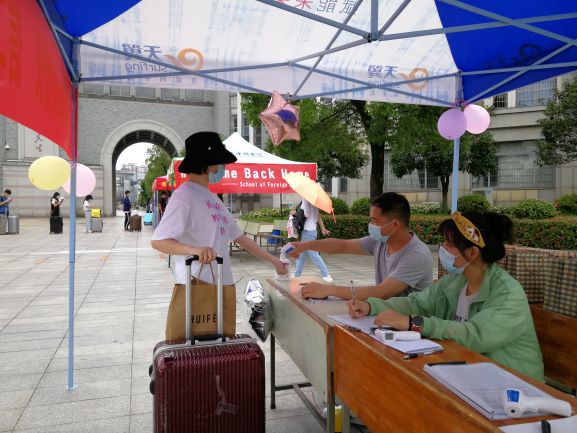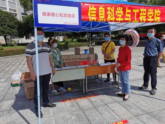 5月30日一大早,辅导员老师就赶来学校精心准备布置报到场地。“寒来暑往纸短情长,信工儿女扬帆起航”的标语,放有防疫指南、消毒湿巾、板蓝根等物资的健康爱心包,辅导员老师从自家带来的星星月亮气球装饰,领导老师的“欢迎回家”……这一幕幕,让久别校园的学生顿感温暖,给学生足够的安全感。大家脸上洋溢着的笑容,驱走了新冠疫情所带来的紧张与阴霾。