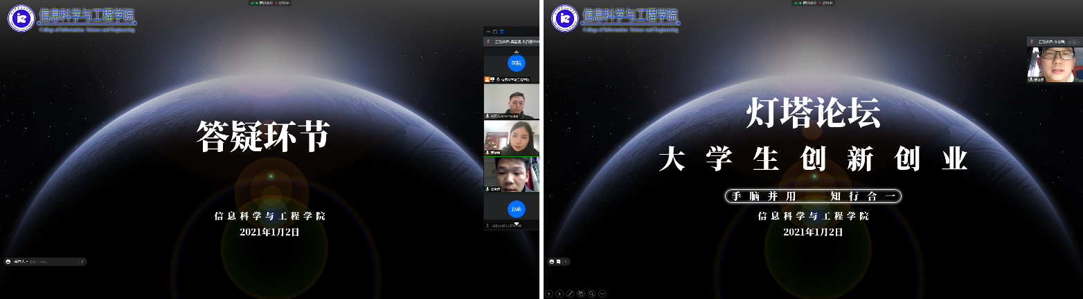 1月2日下午2点30至5点,金年会在腾讯会议APP开展线上“灯塔论坛”之“大学生创新创业”专场。学院党总支书记王杰文、副书记成夏炎、学工办主任关红儒和学工办李荣敬出席了会议,会议邀请了金年会的优秀校友龚宣运、贺诗娉、刘石奇进行经验分享和交流座谈。