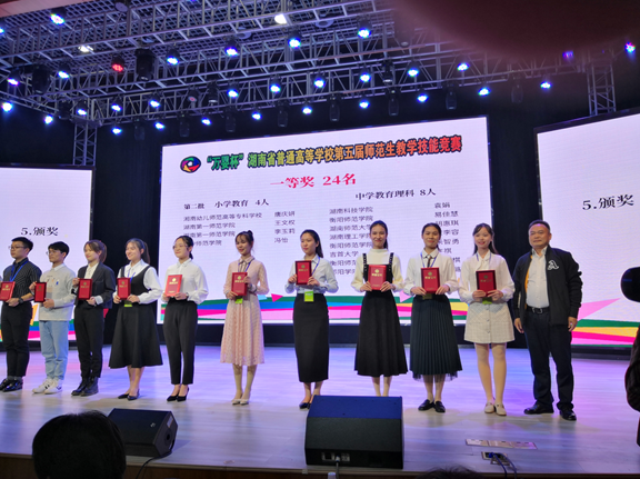 本项竞赛由湖南省教育厅主办、衡阳师范学院承办,旨在推动高校人才培养模式和实践教学改革,强化师范类专业学生职业技能培养,提升师范生的教育教学能力。有来自全省24所院校147名选手参赛,竞赛包含教学设计、多媒体课件制作、教育问答、片段教学(含板书)四个环节,对选手的学科素养、教学能力和综合素养等提出了极高的要求。参赛选手分学前教育组、小学教育组、中学教育组三个组分别开展竞赛,参赛科目覆盖各个阶段相关学科。金年会从2018年10年开始启动师范生教学技能院级竞赛,从初选、复选到强化训练等各环节都得到了学校、院领导的高度重视。黄悦、刘琳两位指导老师不辞辛劳,付出了大量心血,对参赛学生进行了全方位的指导,与学生一道精心进行教学设计,一次又一次地打磨课程片段教学,通过本次竞赛,与兄弟院校的同场竞技和学习交流,为金年会今后更好地推进教师教育教学改革、提高师范生教学技能提供了宝贵经验。