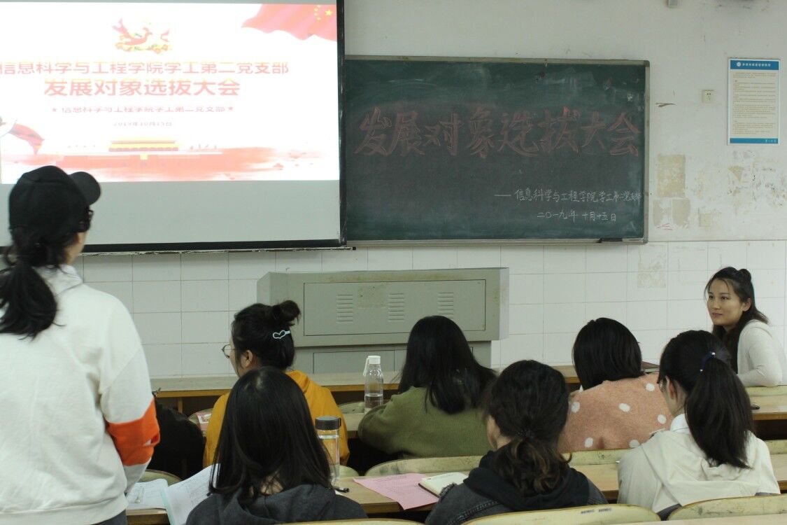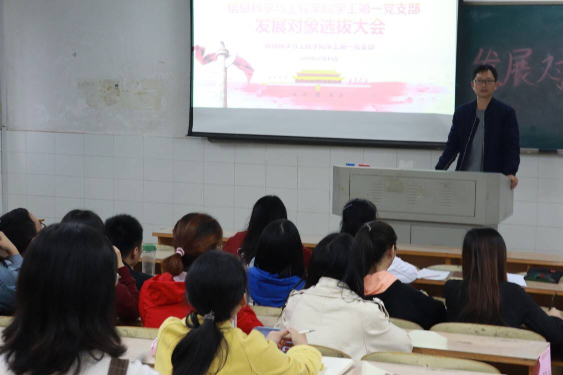 (通讯员 邓世骄 蒋郑菊)为进一步落实金年会党组织对优秀人才的选拔工作,深入了解积极分子的思想动态,10月15日下午,信息科学与工程学院学工第一党支部、第二党支部于玉衡楼北栋507、508顺利召开发展对象选拔大会。学工第一党支部书记关红儒同志、学工第二党支部书记唐瑞鸿同志、部分学生党员及33名入党积极分子参加此次会议。