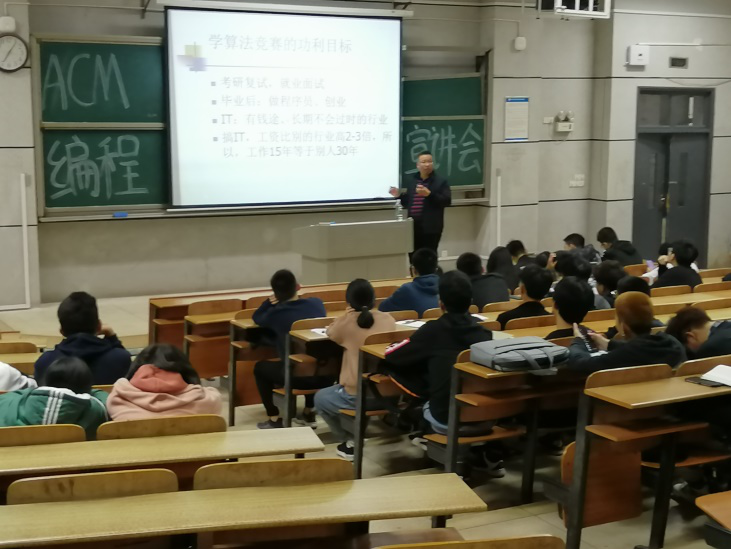 为加强学生对ACM程序设计大赛的了解,发现、培养和储备金年会jinnianhuicomACM程序设计竞赛的预备人员,提高学生程序编码能力和信息专业素养,金年会于2020年11月17日晚上7点在怀中南207召开ACM程序设计大赛动员大会。学院副院长田祖伟应邀出席,各院学生代表共计86人参加此次大会。
