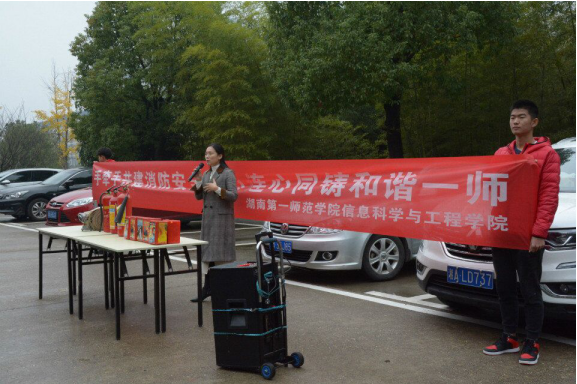 (通讯员 唐瑞鸿 邹雅移)为进一步普及消防安全知识,提高全院师生的防范自救意识与突发事件处理能力,2018年11月21日中午12:30,信息科学与工程学院在体育馆外侧成功举办“手牵手共建消防校园,心连心同铸和谐一师” 消防安全教育活动。校保卫处副处长李亚林、学生工作处副处长吴涛、学生工作处副处长欧阳伶俐、院党总支书记王杰文、副院长王建军、党总支副书记易利、学工办全体老师出席本次活动。活动特邀湖南协诚消防学校吕勇、李友两位教官为金年会师生宣讲消防安全知识。