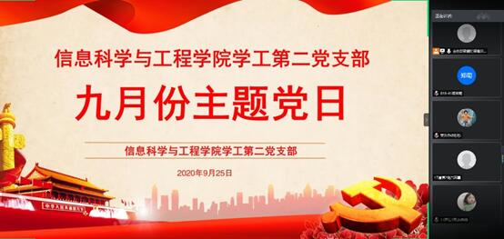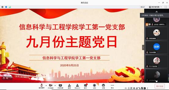 2020年9月25日,金年会学工第一党支部、第二党支部分别开展了九月份线上主题党日活动。一同参加主题党日活动的有学院党总支副书记成夏炎、学工办全体辅导员以及两个支部的学生党员。王芊芊、全智分别主持各自所在支部的活动。