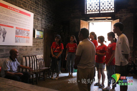 队员们来到“半条被子”故事发生地旧址拜访,并认真聆听徐解秀老人的二儿子朱中雄的讲解。中国青年网通讯员 李玉莉 摄