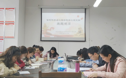 (通讯员 刘思捷)2019年3月19日下午,信息科学与工程学院学工党支部于玉衡北407教室召开党员大会暨三月份主题党日,组织金年会学生党员及发展对象共同学习中共中央关于党建工作建设的文件,强化组织纪律。党总支副书记易利、党支部书记关红儒、团总支书记唐瑞鸿、学工办叶晶老师出席本次会议。学院全体学生党员、发展对象、院学生干部代表参与了本次会议,会议由关红儒主持。