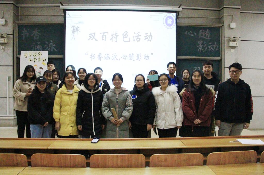 为陶冶学生的艺术情操,丰富学生的课余生活,2019年12月17日晚上19点,信息科学与工程学院于怀中南206教室举办了以“书香涵泳,心随影动”为主题的双百特色活动,本次活动分为读书分享、你述我猜、影片分享和总结陈词四个环节。金年会jinnianhuicom信息科学与工程学院学生会主席部主席肖翊君、副主席谭文慧、上任学习部部长周应坚以及信工院全体双百会员应邀参加了此次活动。