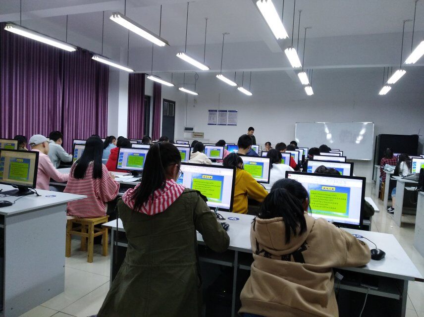 (学员们在实践操作课上学习办公软件的制作与使用)
