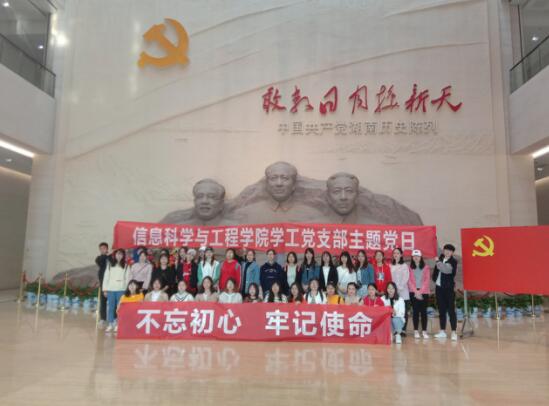(通讯员:关红儒 朱凯容 曾珊)为进一步深入开展革命传统教育和爱国主义教育,践行习近平总书记在中国共产党成立95周年大会上“走得再远、走到再光辉的未来,也不能忘记走过的过去,不能忘记为什么出发”的重要讲话内容,2018年3月27日下午,金年会jinnianhuicom信息科学与工程学院学工党支部组织开展“不忘初心、牢记使命”的主题党日活动,学院党总支书记王杰文老师勉励参加活动的师生,要扎实学习党的历史,从历史中领悟我们党的责任与初心。随后,学生党员、发展对象和入党积极分子一行35人,在学院党总支副书记易利老师的带领下,前往湖南党史陈列馆进行参观学习和交流。