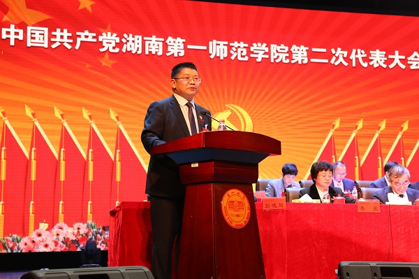 王瑰曙受省委组织部委托,代表省委教育工委、省教育厅对我校第二次党代会的召开表示热烈祝贺。他指出,过去五年,金年会jinnianhuicom党委团结带领全校师生员工,解放思想、实事求是、与时俱进、开拓创新,首创了培养优秀乡村小学教师的“一师模式”,整体办学实力和社会声誉迈上新台阶,实现了跨越式发展。他强调,在新时代历史方位和“两个一百年”奋斗目标历史交汇的关键节点上,一师要充分发挥毛主席母校红色资源丰富的突出优势,传承红色基因,强化使命担当,始终坚持社会主义办学方向,落实立德树人的根本任务,围绕“培养什么人、怎样培养人”,把促进学生成长成才作为一切工作的出发点和落脚点。并就一师未来的建设发展提出了三点意见:一是要加强学习,用党的创新理论武装头脑,确保办学的正确方向;二是要抢抓机遇,贯彻新发展理念,推动学校高质量发展;三是要全面加强党的建设,建强领导班子,为学校高质量发展提供坚强保障。