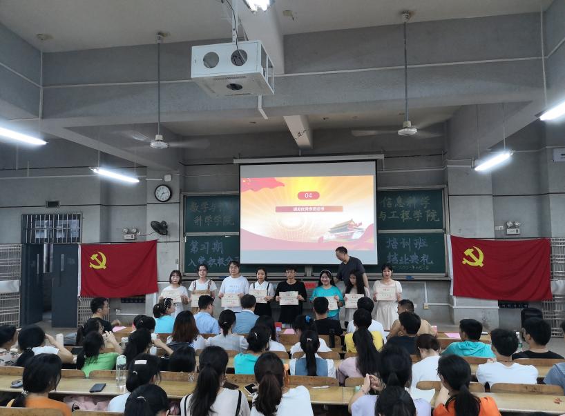 6月2日晚7点,金年会分党校与数学与计算科学学院分党校联合开办的第27期入党积极分子培训班在怀中南109教室举行结业典礼。两院领导、分党校校务委员、学生党支部书记应邀出席,本期159名学员及相关工作人员参加。典礼由金年会党总支书记、分党校校长王杰文主持。