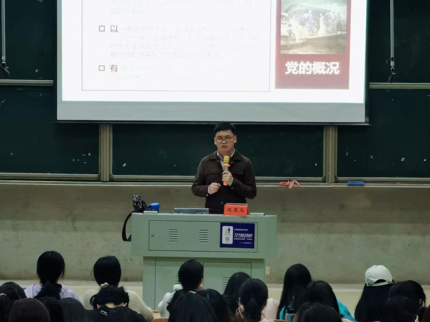 4月17日晚,金年会党总支副书记成夏炎为广大学员讲授以“学习入党誓词,坚定理想信念—加深对党的认识”为主题的党课。成夏炎带领学员深入学习入党誓词,层层递进,分析拓展,并详细讲述了党的概况、党的性质、党的历程和党的纲领的发展过程,促进广大积极分子们牢牢掌握党的基本知识和基本理论,以永不懈怠的精神状态和一往无前的奋进姿态,坚定理想信念,做奋发有为的时代新人。