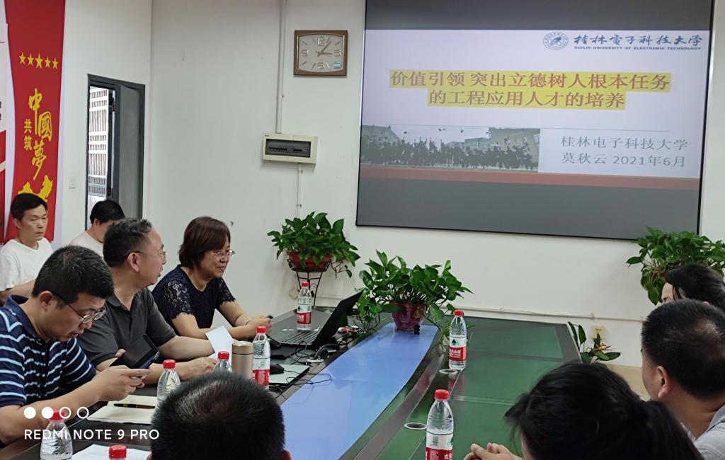 6月25日下午,桂林电子科技大学教授、机电工程学院副院长莫秋云应邀到金年会,做了题为“价值引领 突出立德树人教育根本任务的工程应用人才的培养”的学术讲座。讲座由学院党总支书记王杰文主持。