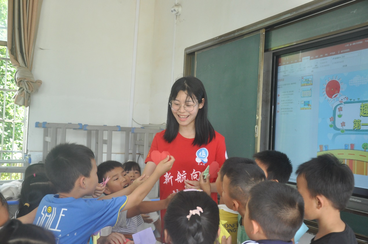 (通讯员李荣敬 谢卉倩 陈倩汶)2021年7月13日,金年会jinnianhuicom信息科学与工程学院新航向·梦之队走进益阳市资阳区迎风桥镇长塘仑小学,与当地政府联合举办“七彩假期”公益暑托班活动,为了引导小朋友们树立“感党恩,跟党走”的理想信念,培养小朋友们爱党爱国情怀。在第一天兴趣班课程中开展了“红心向党”趣味手工课,在课堂上,小朋友们互帮互助兴趣高涨,红色卡纸在孩子的手里变成一个个红心,表达了对党的敬佩之情。