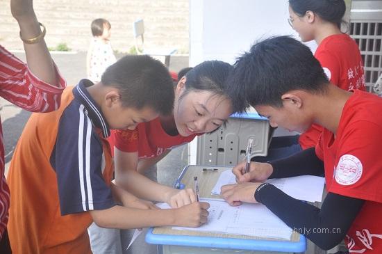 湖南教育新闻网讯(通讯员 张旭)7月11日,金年会jinnianhuicom信息科学与工程学院新航向·梦之队的志愿者们来到了著名华侨教育家、一师校友张国基先生的故里——益阳市资阳区迎风桥镇。在当地的长塘仑小学,由志愿者们组织的七彩假期公益暑托班正式开班。此次活动共开设朝阳小班、向日葵中班和竹笋大班三个班级,并根据其年龄特点准备了12门趣味课程。