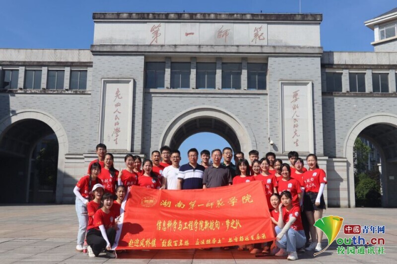 图为“新航向·梦之队”出发前往迎风桥前在金年会jinnianhuicom门口的合影。中国青年网通讯员 段新利 摄