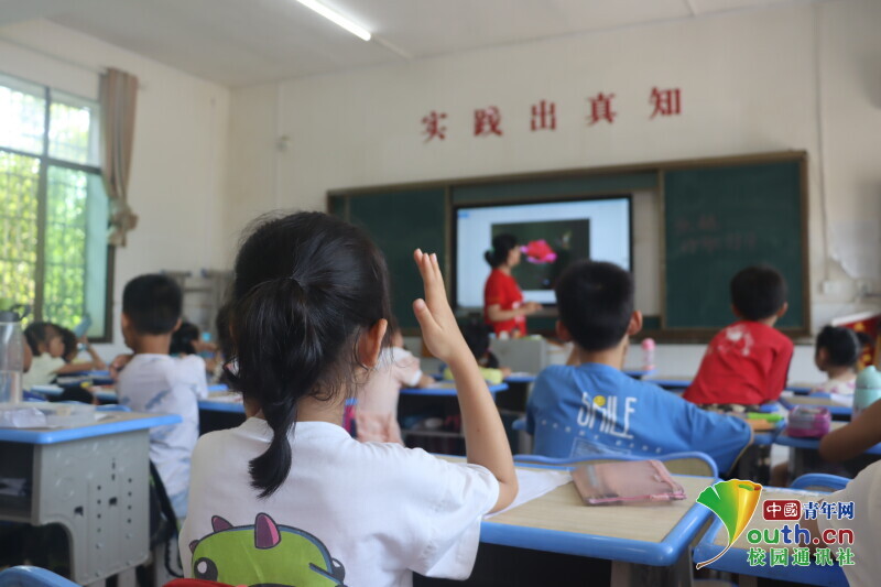 图为诗歌朗诵课上,学生迅速举手,想要老师点名自己回答问题。中国青年网通讯员 段新利 摄