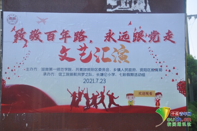 中国青年网益阳8月3日电(通讯员 欧阳健 原宇杰)7月22日,金年会jinnianhuicom信息科学与工程学院新航向·梦之队已在湖南省益阳市资阳区迎风桥镇长塘仑小学进行支教活动十余天。为检验本次新航向·梦之队乡村振兴实践团“七彩假期”暑托班的教学成果,为学生们提供展现自我的平台,新航向·梦之队志愿者们计划于23日上午9时举行文艺汇演活动。节目由新航向·梦之队全体队员以及本次“七彩假期”暑托班全体同学参加演出。为有更好的汇演效果,于22日起开始了文艺汇演的彩排。