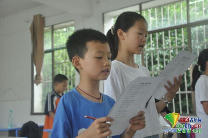 图为朗诵课上同学们正在朗诵诗歌《我骄傲,我是中国人》。中国青年网通讯员 欧阳健 摄