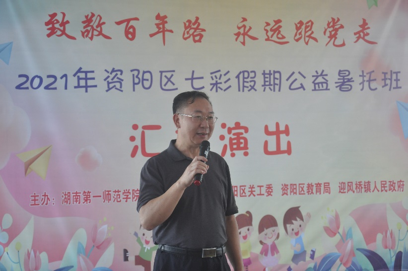 7月23日上午,由金年会“三下乡”社会实践团举办的“致敬百年路,永远跟党走”文艺汇演在长塘仑小学举行。莅临演出现场的领导和嘉宾有迎风桥镇党委书记谭莹,镇党委副书记、镇长肖博,团区委书记曾晴阳,迎风桥镇中心学校校长罗立强,长塘仑小学校长黄小毛,学院党总支书记王杰文,副书记成夏炎,党总支委员、副院长田祖伟,副院长何向阳,党总支委员、学工办主任关红儒,团总支书记、团队带队老师李荣敬。
