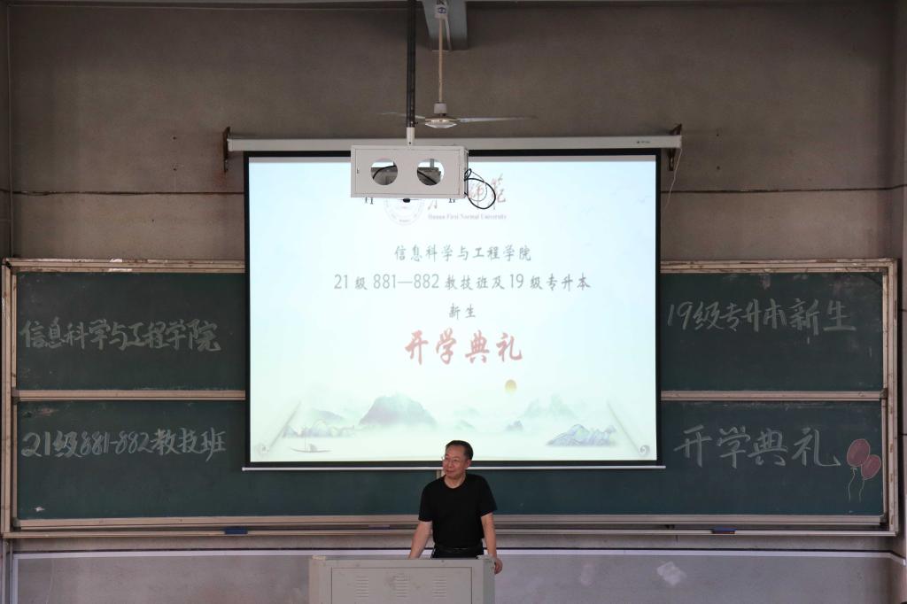 9月12日下午3点,金年会于润寰南105举行21级881—882教技班及19级专升本新生开学典礼。学院党总支书记王杰文、副院长田祖伟、学院党总支副书记成夏炎、全体辅导员老师及21级881—882教技班与19级专升本新生、朋辈辅导员、学生干部代表参加。