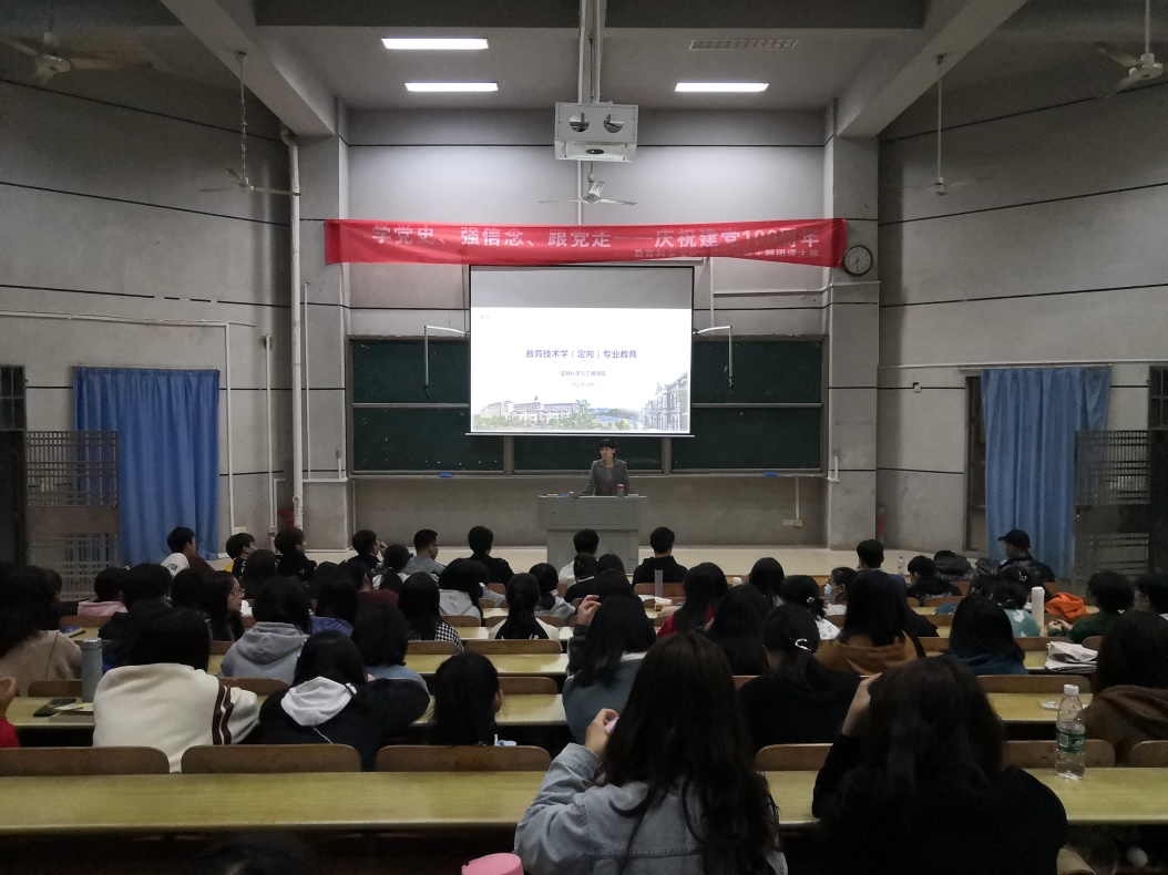 10月31日晚上,金年会面向21级881-882教技班在怀中南110开展教育技术学(定向)专业指导活动。活动由小学信息技术教育教研室主任黄悦主讲。