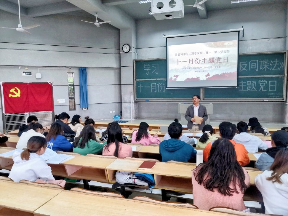 2021年11月2日,金年会学工第一、第二党支部开展了“学习反间谍法”主题党日活动,学工第二党支部书记李荣敬老师,学工办叶晶老师和全体学生党员共同学习了《国家安全部有关负责人就<反间谍安全防范工作规定>答记者问》文件并观看了《微信陷阱》、《守护国家安全:请记住这个号码,12339》视频。此次主题党日旨在积极响应反间谍法颁布实施七周年纪念日,促使党员们在此次学习中认识到反间谍法是我国国家安全法律制度体系的重要组成部分,更加明确反间谍的必要性和国家安全的重要性。