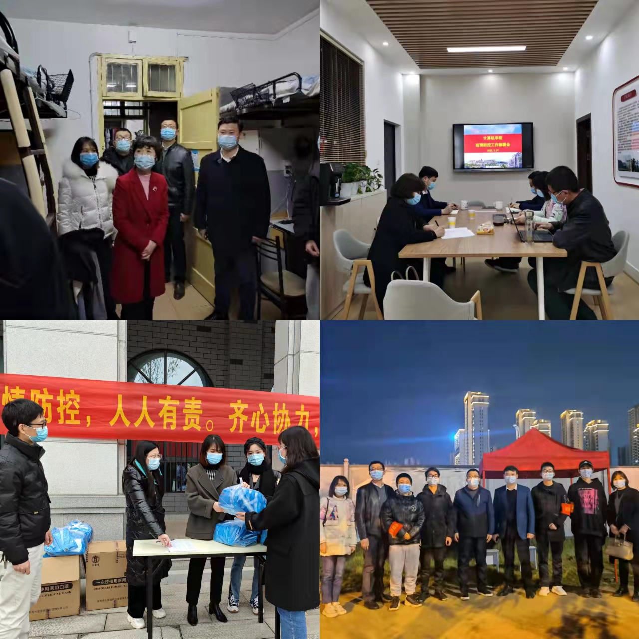 学院领导高度重视,多次召开疫情防控专题工作会议,部署学院疫情防控工作和防控期间教育教学工作,并制定了《金年会诚信信誉至上疫情防控应急预案》。全院师生响应号召,自愿加入疫情防控围墙巡查工作,组建了一支由全院教师和学生志愿者组成的师生先锋队,“全时段、轮班制”进行围墙巡查,对可能存在的安全隐患逐一排查,把好疫情防控关口。