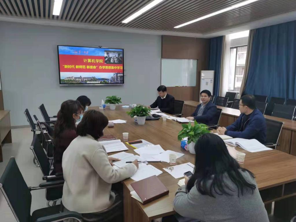 此次学习采取学院领导班子成员、系主任领学,线上线下相结合的方式进行。刘立勇领学了习近平总书记关于高等教育与教师教育的重要论述和陈宝生部长在新时代全国高等学校本科教育工作会议上的讲话。院长满君丰重点解读了硕士学位授予单位申请基本条件,并结合学院实际探讨了如何加快建设高水平本科教育,全面提高人才培养能力。副院长何向阳就全面深化新时代教师队伍建设以及中国教育现代化2035进行了宣讲。院党委副书记陈奕对教师教育振兴行动计划和深化新时代教育评价改革总体方案进行了解读。系主任岳珂娟解读了计算机类教学质量国家标准。