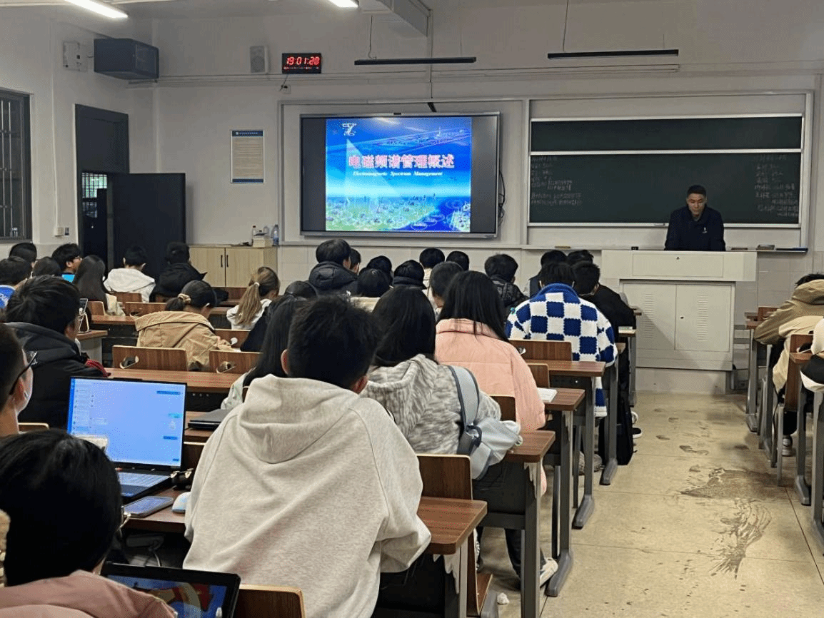 国防科技大学博士高强以“电磁频谱管理”为主题,通过生动形象、浅显易懂的实例,帮助同学们更好地理解讲座内容。他介绍了电磁频谱管理的发展历程和电磁频谱管理职能的任务,以及其对统筹协调国家和军队建设用频、参与国际和国家无线电管理政策制定、频谱资源应用规划和使用协调等方面的作用。