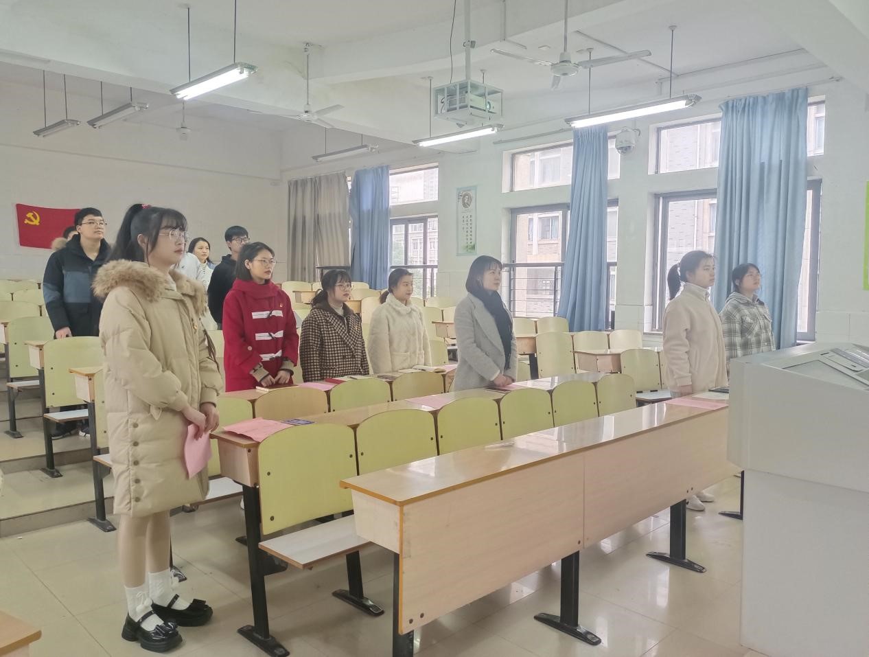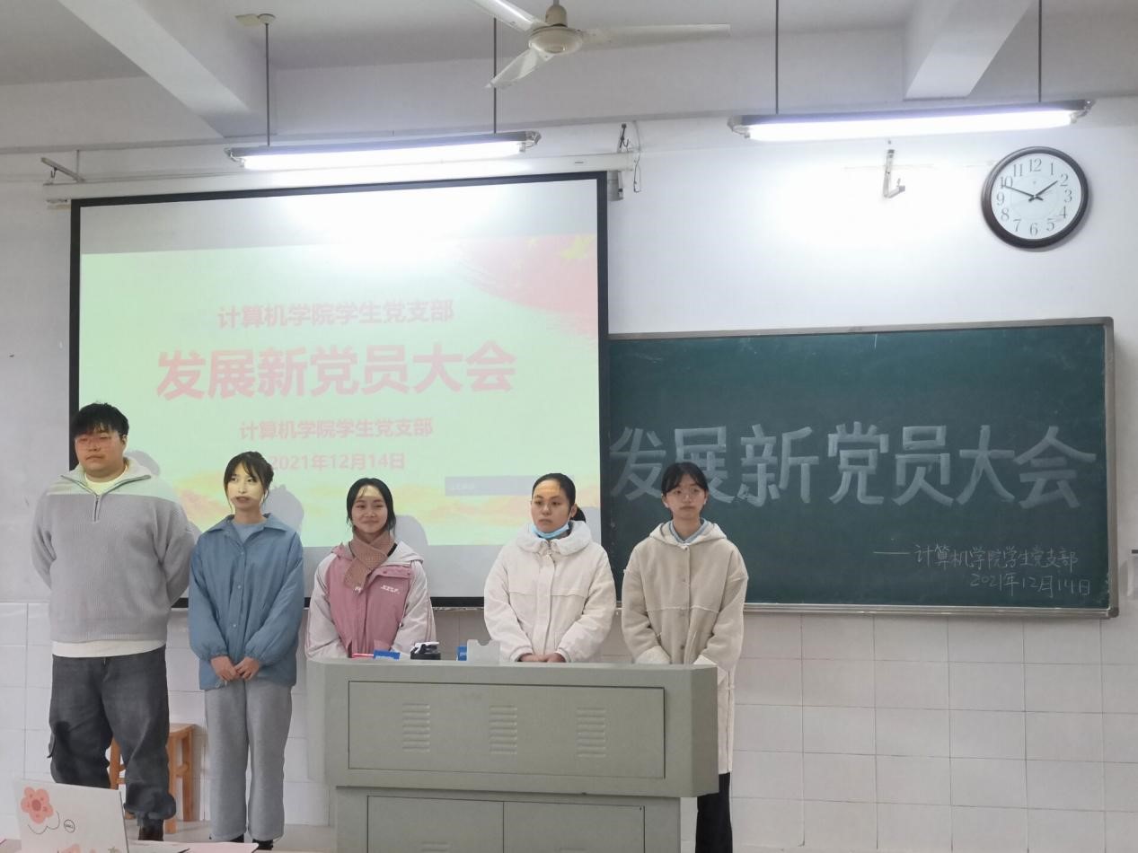 2021年12月14日,金年会于玉衡北309、玉衡北310召开发展新党员大会,并于腾讯会议同步进行线上会议。参会人员有学院党委副书记陈奕、党支部书记关红儒以及学生党员、发展对象。会议分别由罗林、苏琴主持。