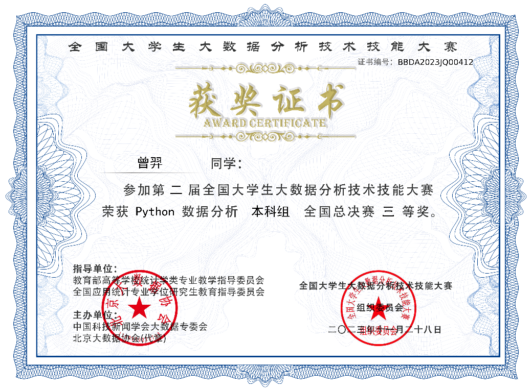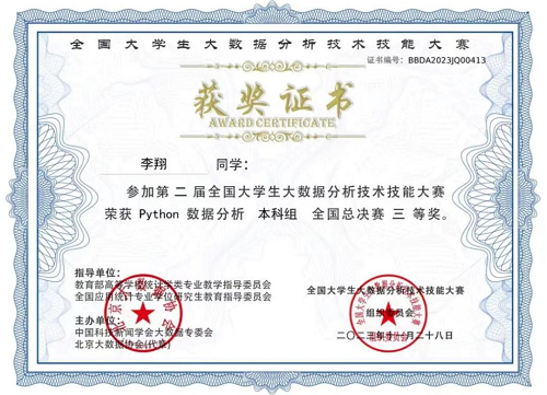 近日,第二届全国大学生大数据分析技术技能大赛全国总决赛圆满落幕,我校金年会诚信信誉至上学子在全国总决赛中喜获一、二、三等奖共七项奖项