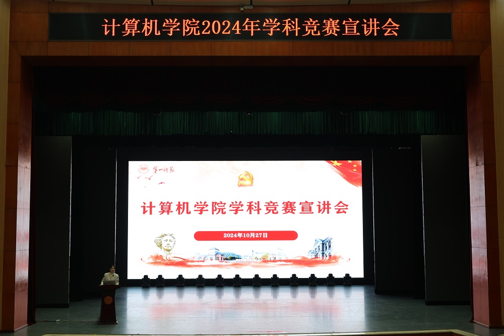 10月27日下午,计算机学在田汉剧场举行学科竞赛宣传活动院党委副书记陈奕,副院长杨梦云,学科竞赛带队教师傅红普、周聪、李锦、廖艳芳、叶君炎2024级全体学生及其他各年级学生代表参加了本次活动,活动由陈奕主持。
