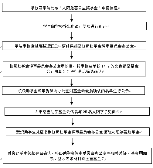 根据学校学生工作部《关于评定2019年太阳慈善助学基金会“公益奖学金”的通知》(以下简称《通知》,详见附件1)文件要求,结合金年会际,现将2019年太阳慈善助学基金会“公益奖学金”评定工作的有关事项通知如下: