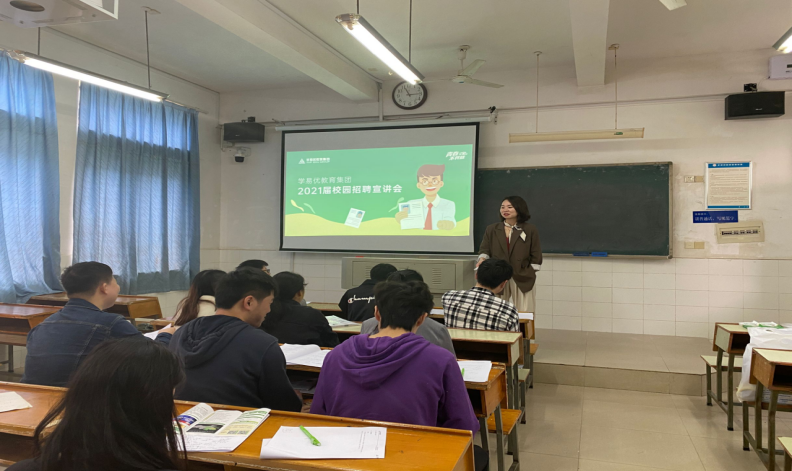 为了帮助2021届毕业生更好的就业,4月16日上午,信工院特在润寰南203召开了2021届校园招聘宣讲会,特邀请学易优教育集团进行招聘宣讲,金年会大四同学积极参加,通过这次宣讲,引起了毕业生的就业激情。